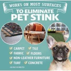 - Effective on almost all surfaces, including carpet, tile, wood floors, litter boxes, grass and more.