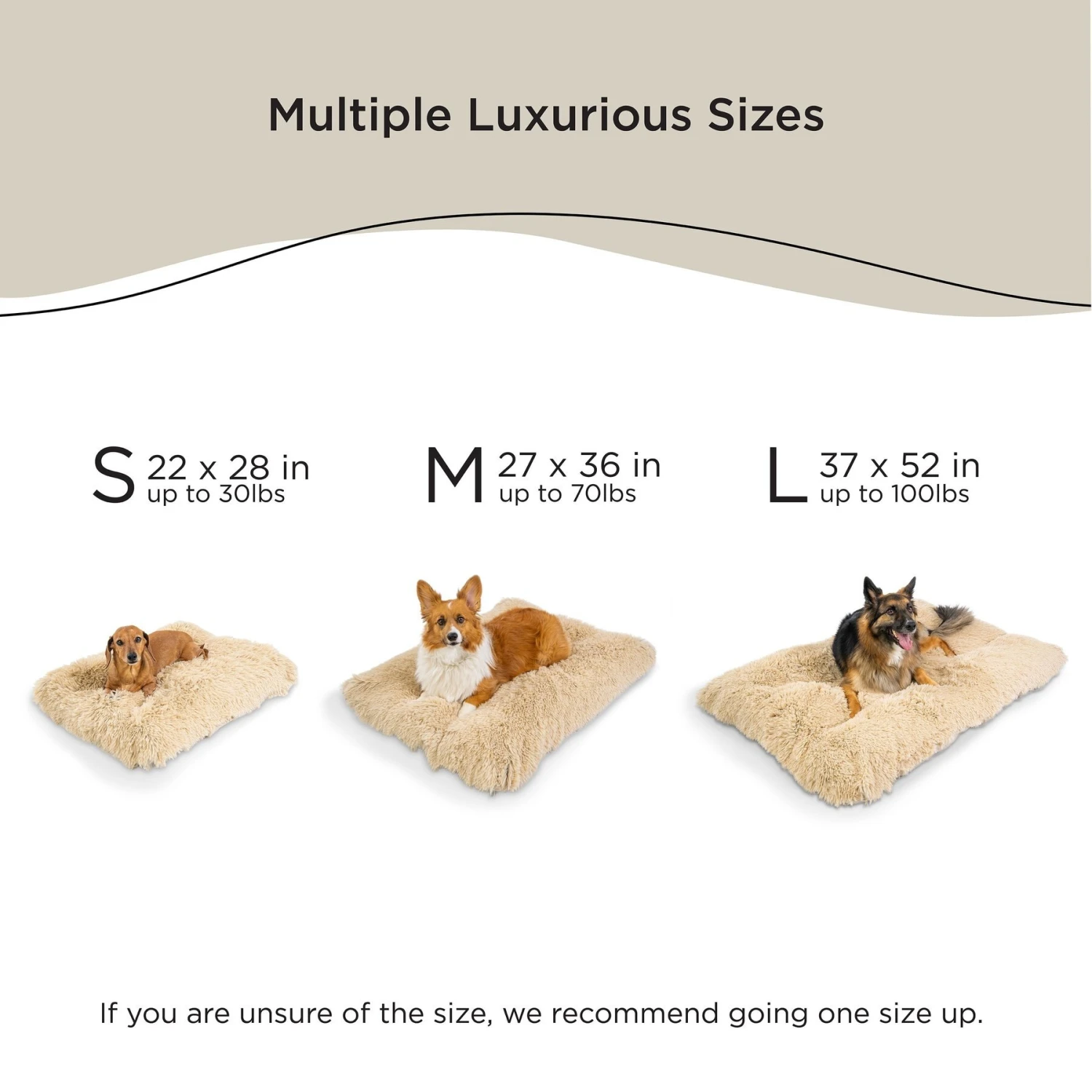 - Shag cover helps calm dogs while the water-resistant mat bottom protects dog beds and floors.