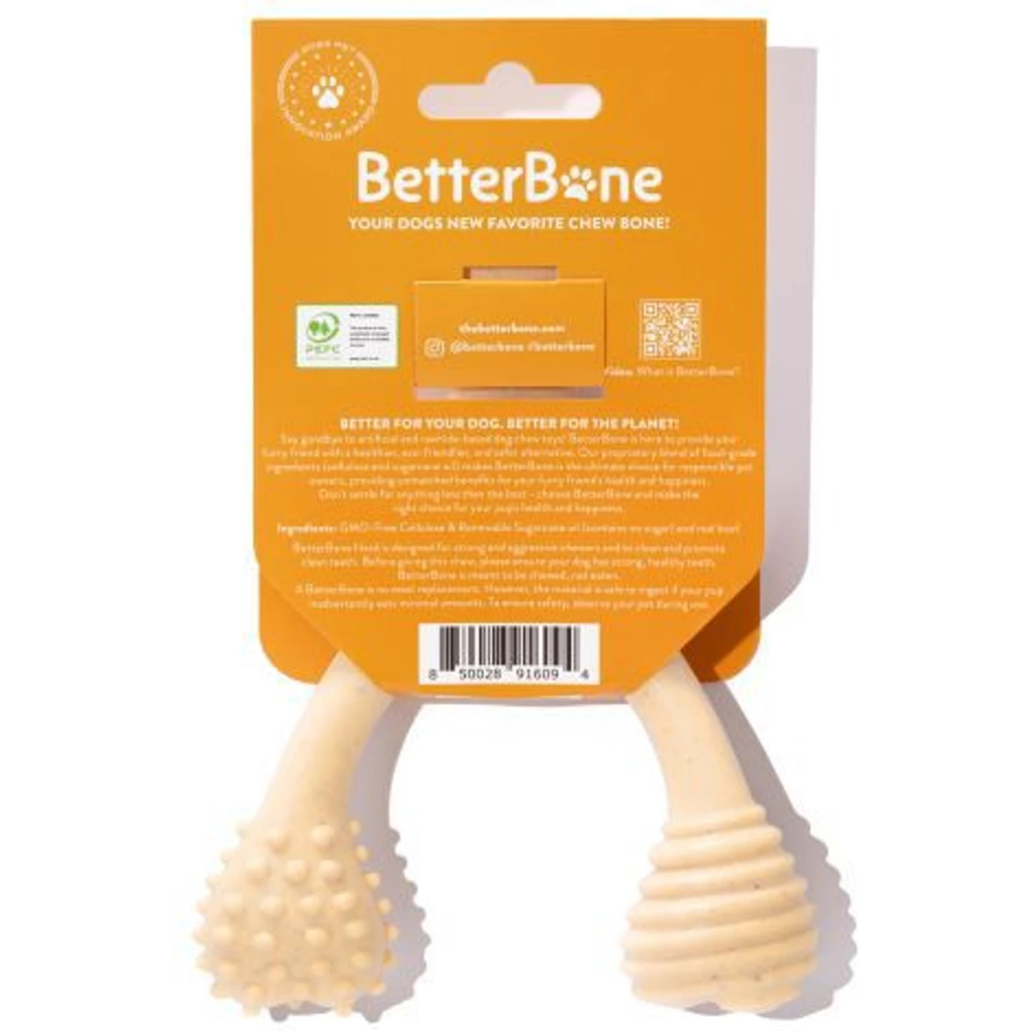 “Chews” a toy to really keep your pup entertained with the BetterBone Tough Beef Dog Toy. This all-natural chew toy is specially designed to stand up to even the most aggressive chewers. It’s non-toxic, nylon-free, splinter-resistant, and sustainable for a toy that’s good for your pup and the planet. Plus, it’s made with two food-grade ingredients so it’s as safe as it is tasty. The BetterBone Tough is roughly 5 to 10% harder than nylon, so it’s best suited for dogs with strong, healthy teeth and those who love a good rugged chew.
