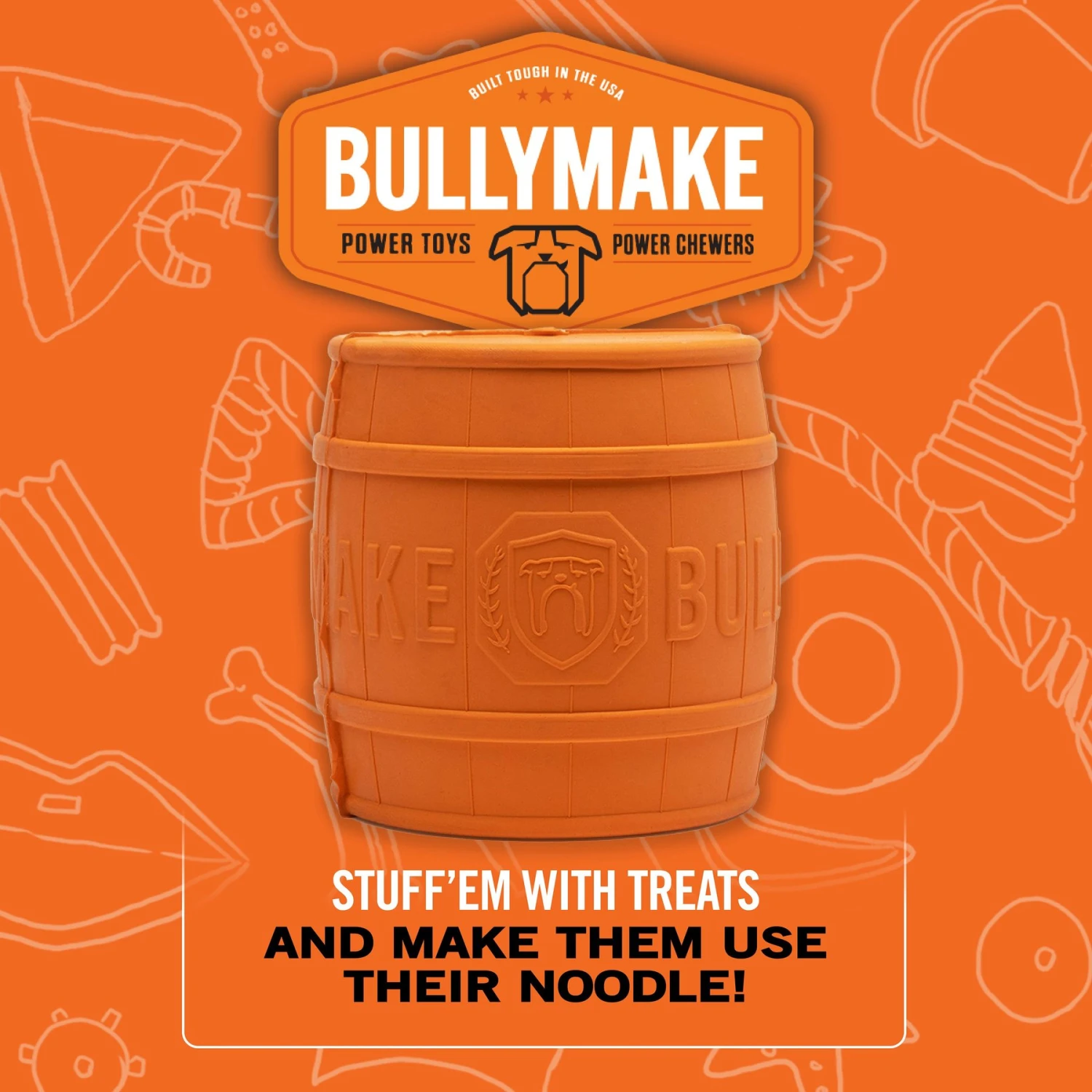 Give your pup the paw-fect playtime toy! The BullyMake Keg Dog Toy is designed with strength and durability in mind! Made from reliable rubber materials, this toy will stand up to the even the toughest chewers. It features a variety of textures and surfaces for different mouthfeels, and it also functions as a treat dispenser. Keep your best bud’s curiosity strong and energy high with a toy that delivers plenty of play paw-sibilities!