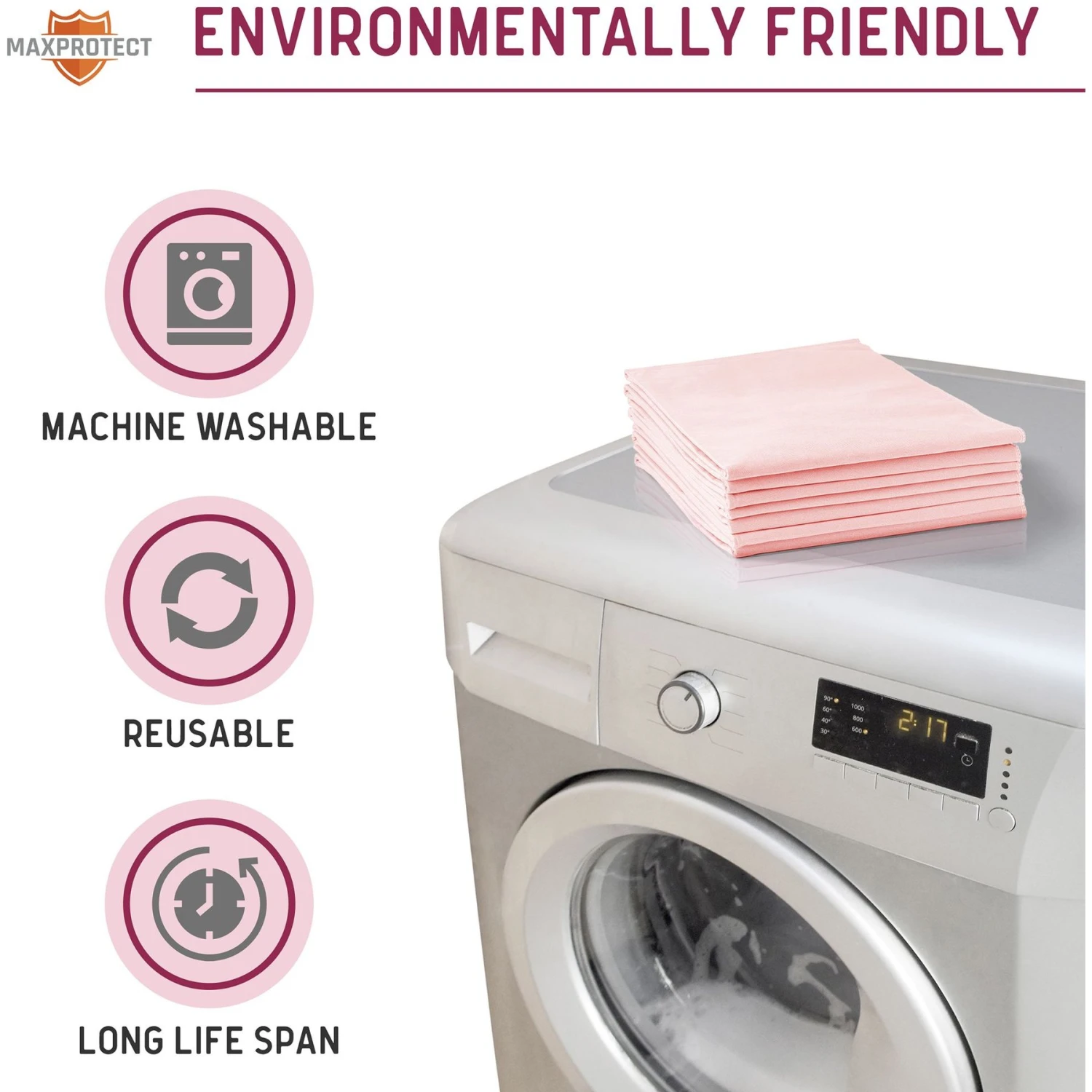 Wash prior to use. Do not use softener. Fabric softener inhibits absorbency/wicking. Tumble dry: Max 160F. Bleach when needed. Chlorine or peroxide may be used. Do not iron.