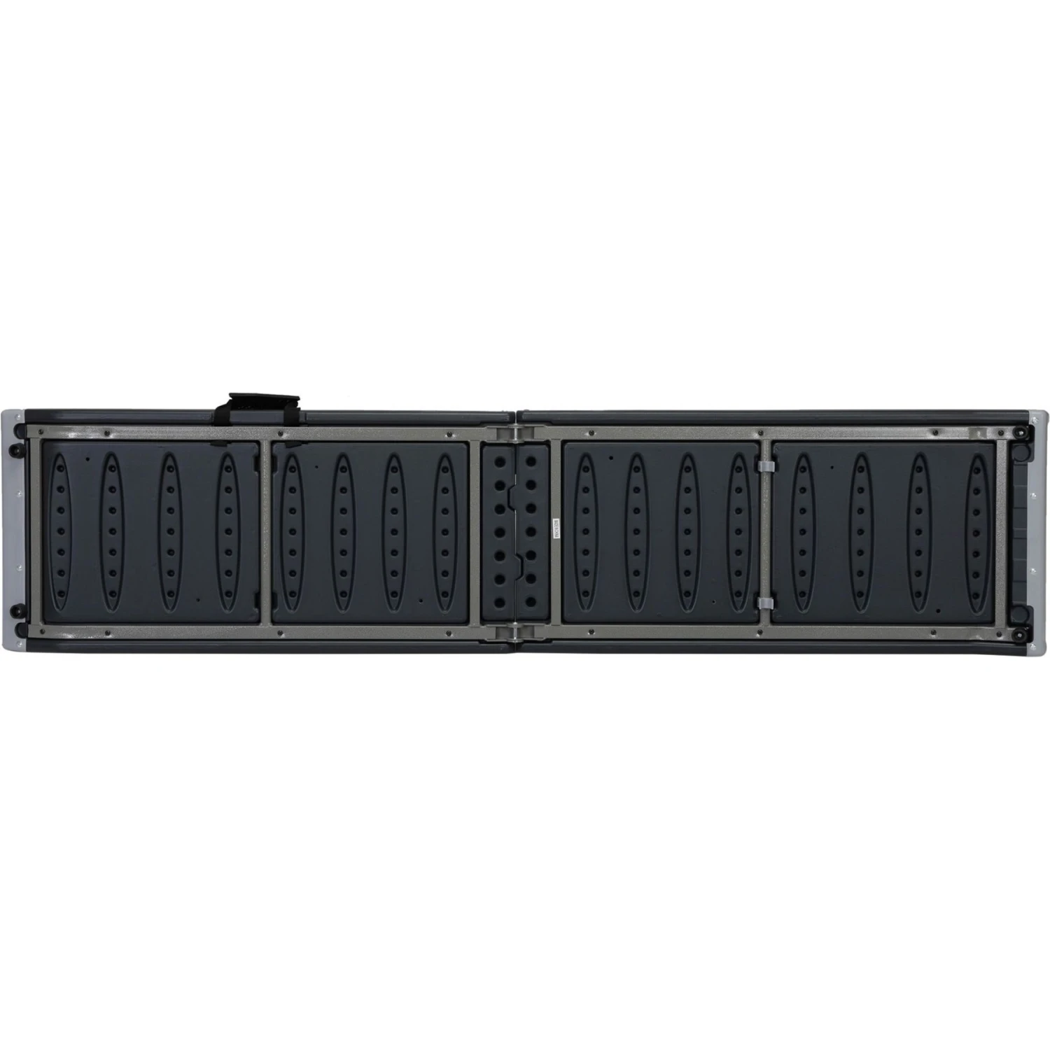 - Folding sections are connected using steel tubes for added stability and safety.