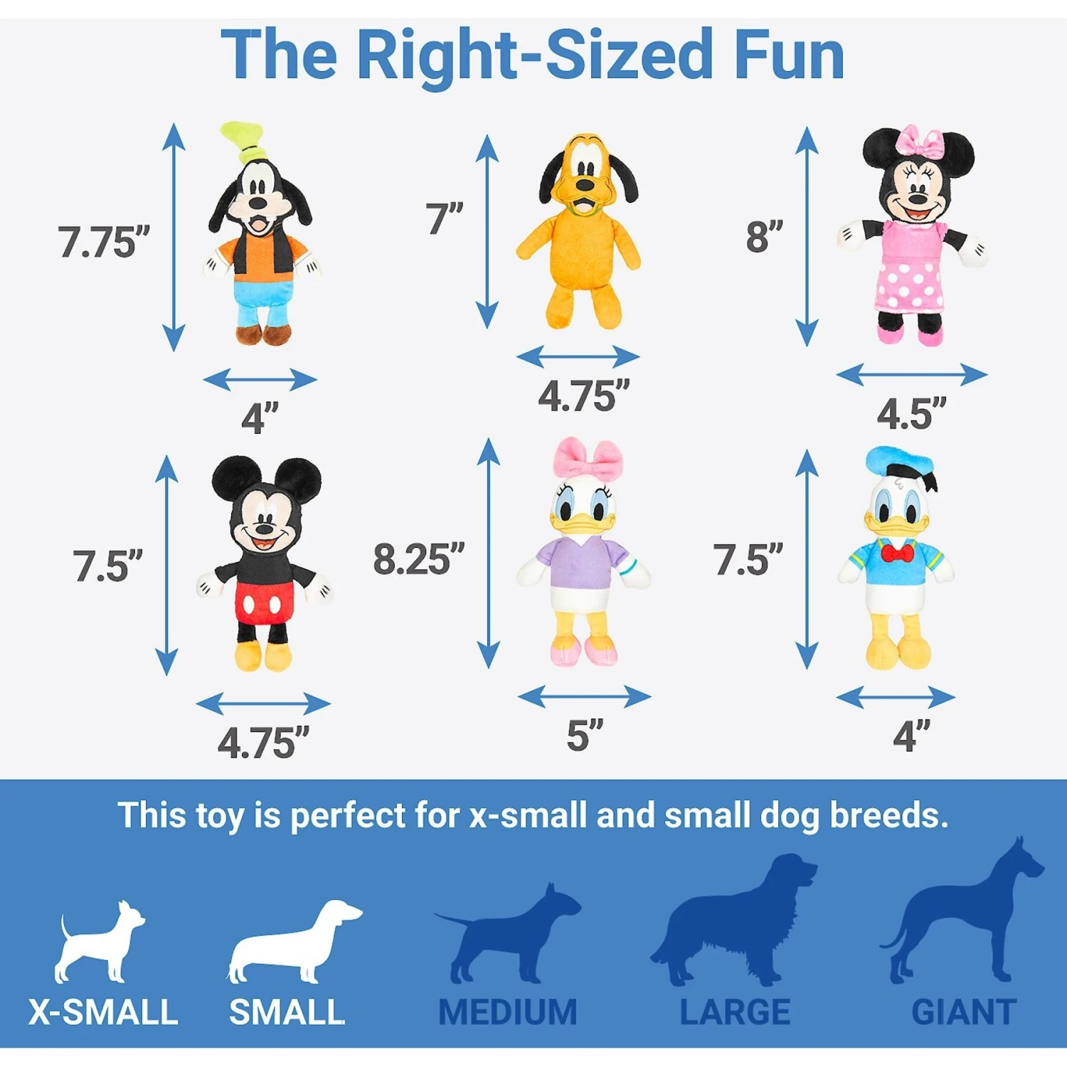 - Includes Mickey, Minnie, Donald Duck, Daisy, Goofy and Pluto, for a total of six toys.