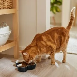 - The elegant design adds to your home’s décor as well as your dog or cat’s dinnerware.