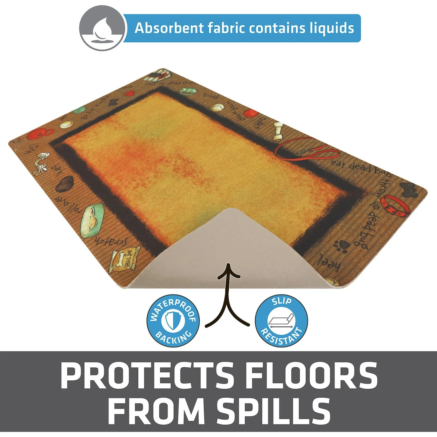 Help put the WOW in bow wow with the Drymate Bow Wow Border Dog Placemat. This dog placemat absorbs liquids quickly and features a waterproof bottom to help keep accidental messes to a minimum. It’s machine-washable for easy cleaning and comes complete with a non-slip backing to keep it in place. When you use this dog placemat, you won’t have to worry about food on your floors that could lead to stains or chores.