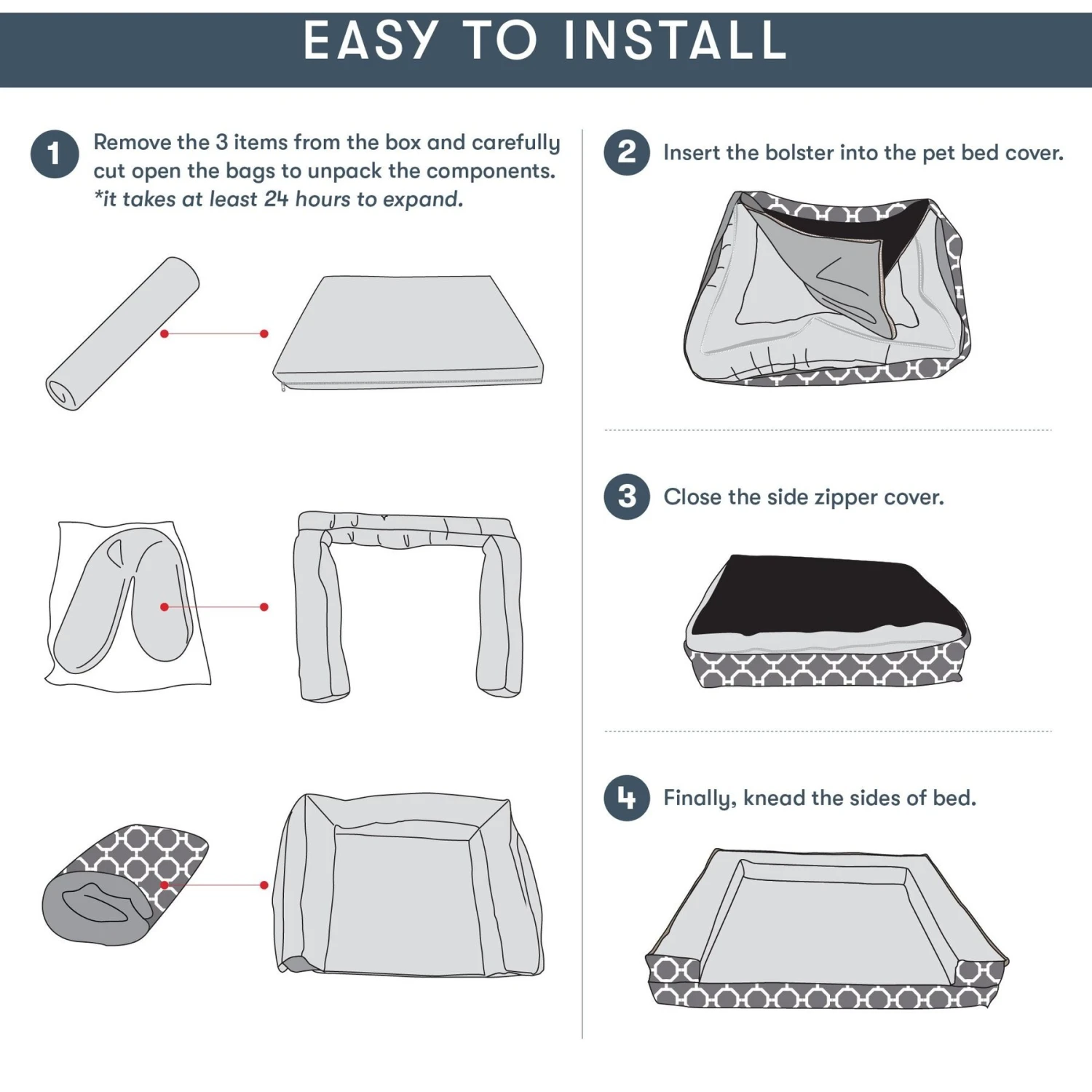 Keep your furry friend comfy and happy with the Friends Forever Harper Orthopedic Couch Bolster Sofa with Removable Cover Cat & Dog Bed! Designed with extra care, your best pal will get a solid night’s sleep in this luxuriously comfortable bed. The cushioned bolster features an orthopedic foam base, providing exceptional comfort for head, hip and bone support—paw-fect for your fur-iend with joint pain or arthritis. The low entrance allows your smaller or older pet easy access, and the cover removes easily for machine cold-water washing, drying and reshaping. You’ll love the fashionable fabric design that matches your home décor.