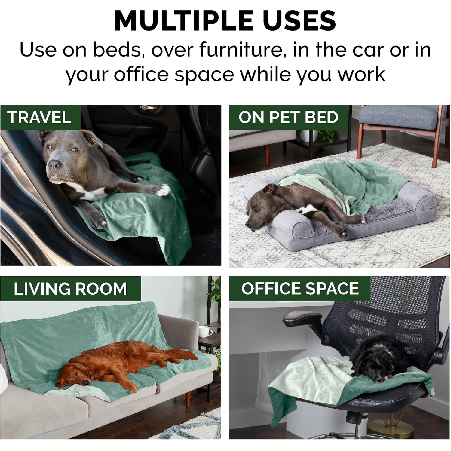 After a day of fetch and fun, your furry friend will sleep soundly with a cozy FurHaven Waterproof Velvet Dog & Cat Throw Blanket. Made from super-soft, velvety fabric, this water-repellant blanket is paw-fect to use on the couch, in the car, or on your fur-iend’s favorite bed. A special coating on the fabric helps protect your furniture and bedding from pet messes, dirt and liquids. Freshening it up easy—simply toss the blanket in the washing machine on the delicate cycle and hang to dry.