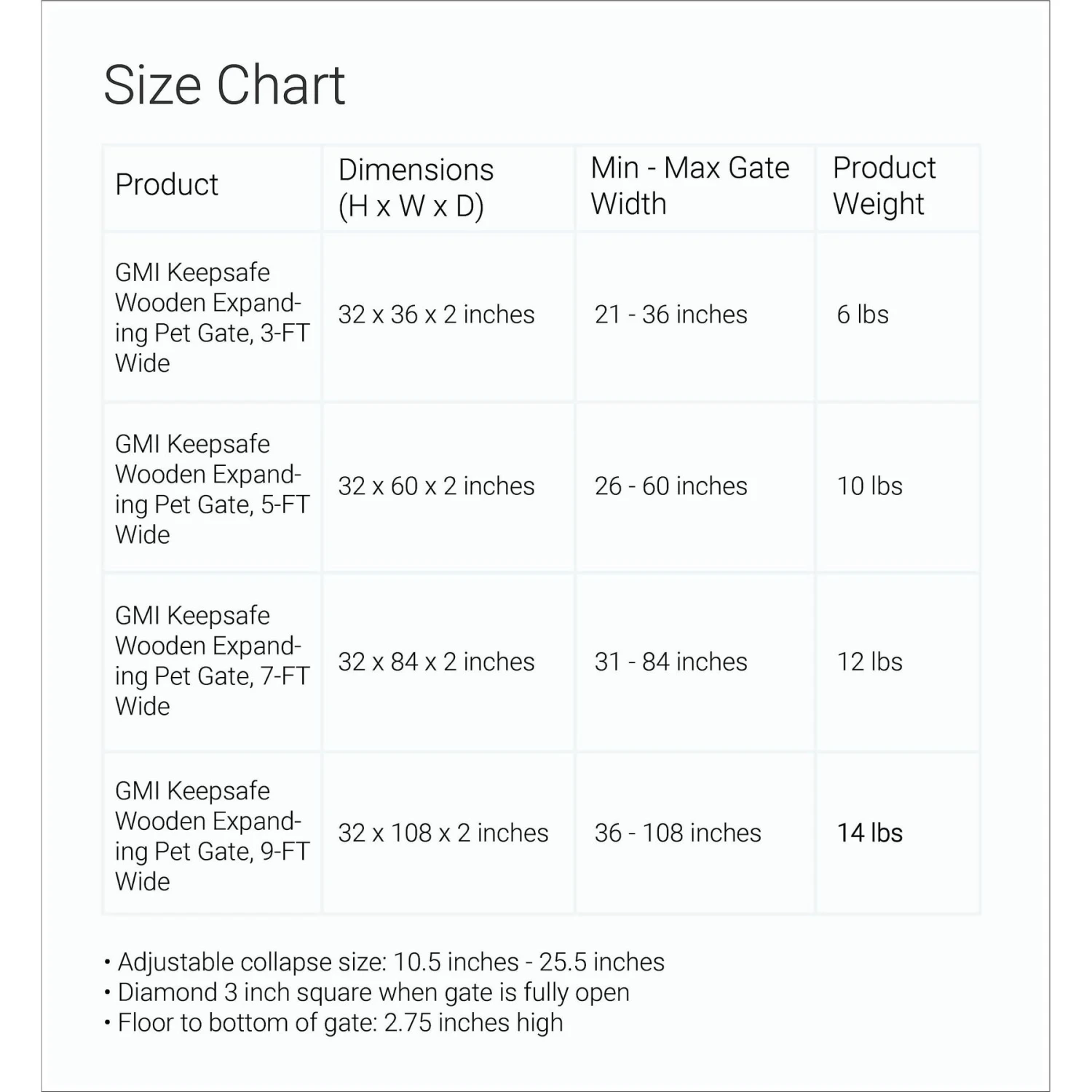 Keep your frolicking, adventurous pup in his safe space with the GMI Keepsafe Wooden Expanding Pet Gate. This high-quality gate is recommended by many major kennel clubs for its safety and reliability. The uneven latticed top discourages pets from jumping over since they can’t see a solid “push off” point. It features GMI’s Soft Touch Finger Latch for easy one-handed operation, while the patented rivet design prevents pinch points. This gate is “Top of Stairs” safety certified and securely attaches to the wall with simple hand tools. It swings a full 180 degrees for easy pass-through and closes to the smallest profile of any expansion gate when not in use.