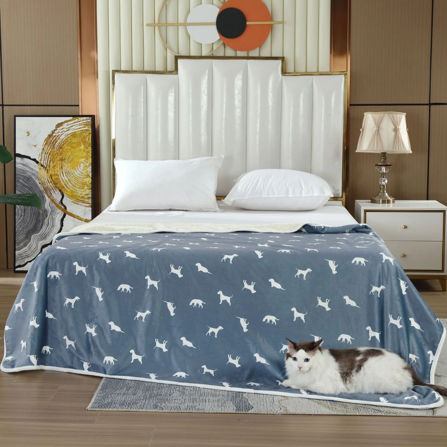 Protect your furniture and bedding from all kinds of pet-related messes with the HappyCare Textiles Advanced Pets Print cozy Waterproof Cat & Dog blanket! This ultra-soft pet blanket is made with high-quality, soft flannel and fleece. It features a waterproof inner layer—so if your furbaby has an accident, the top layer of fabric will absorb the mess and help prevent it from seeping into your furniture. Plus, the blanket is machine-washable for quick and easy cleanups. This versatile blanket is great for use at home or on the go. From the bed to the car, crates and more, Happycare Textiles has your pal covered!