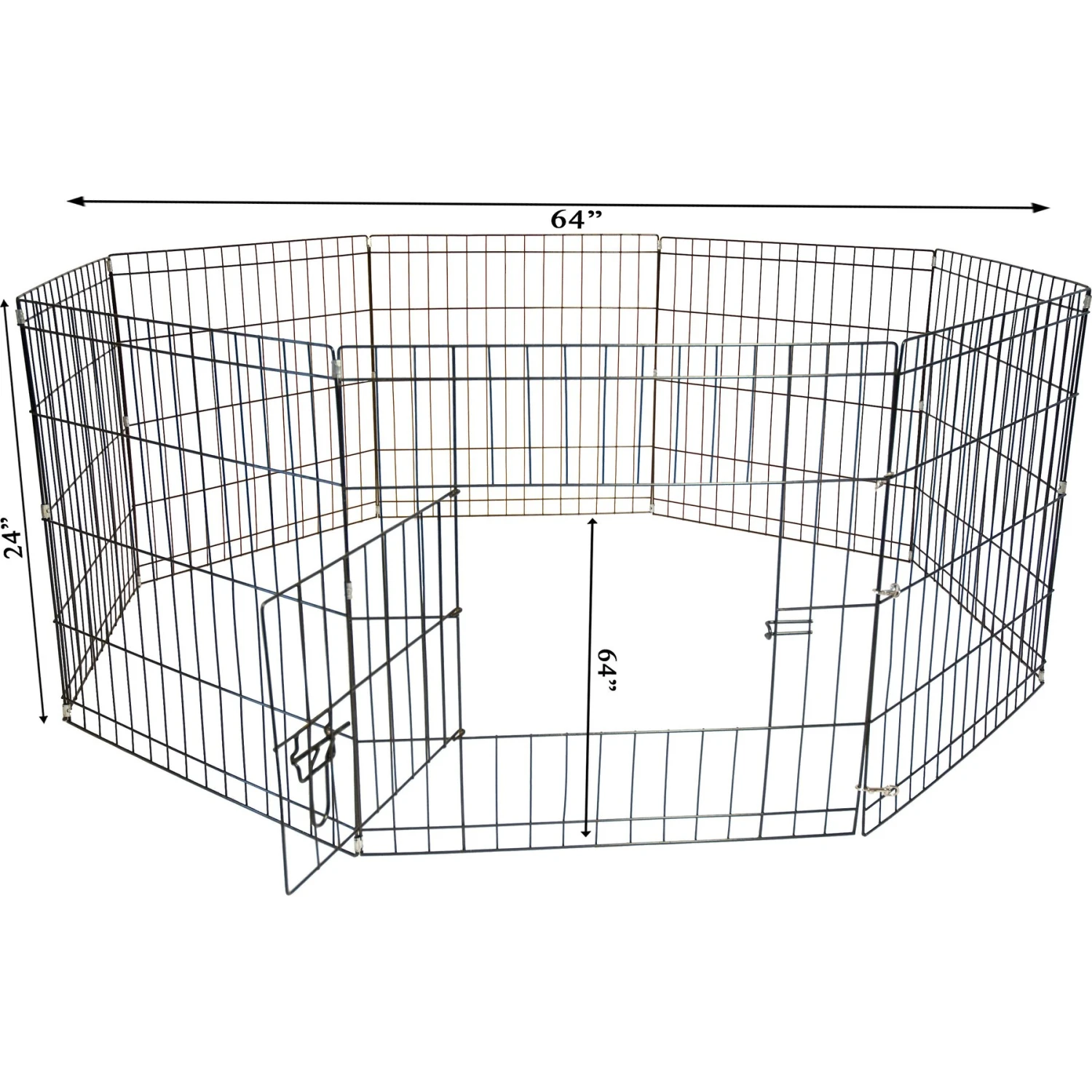 Iconic Pet Octagon Eight Panel Portable (Foldable) Pet ,Dog and Cat Wire Pen is paw-fect for giving your doggo his own little exercising arena. Crafted for high-visibility, you’ll be able to see that your pal is safe and having fun, even from a distance. Setup, storage and transport is made to be easy with 8 collapsible panels that can form a variety of shapes both indoors and outdoors. Purchase multiple units that attach together and provide an even larger play area. Watch your sidekick exercise safely in this secure playpen.
