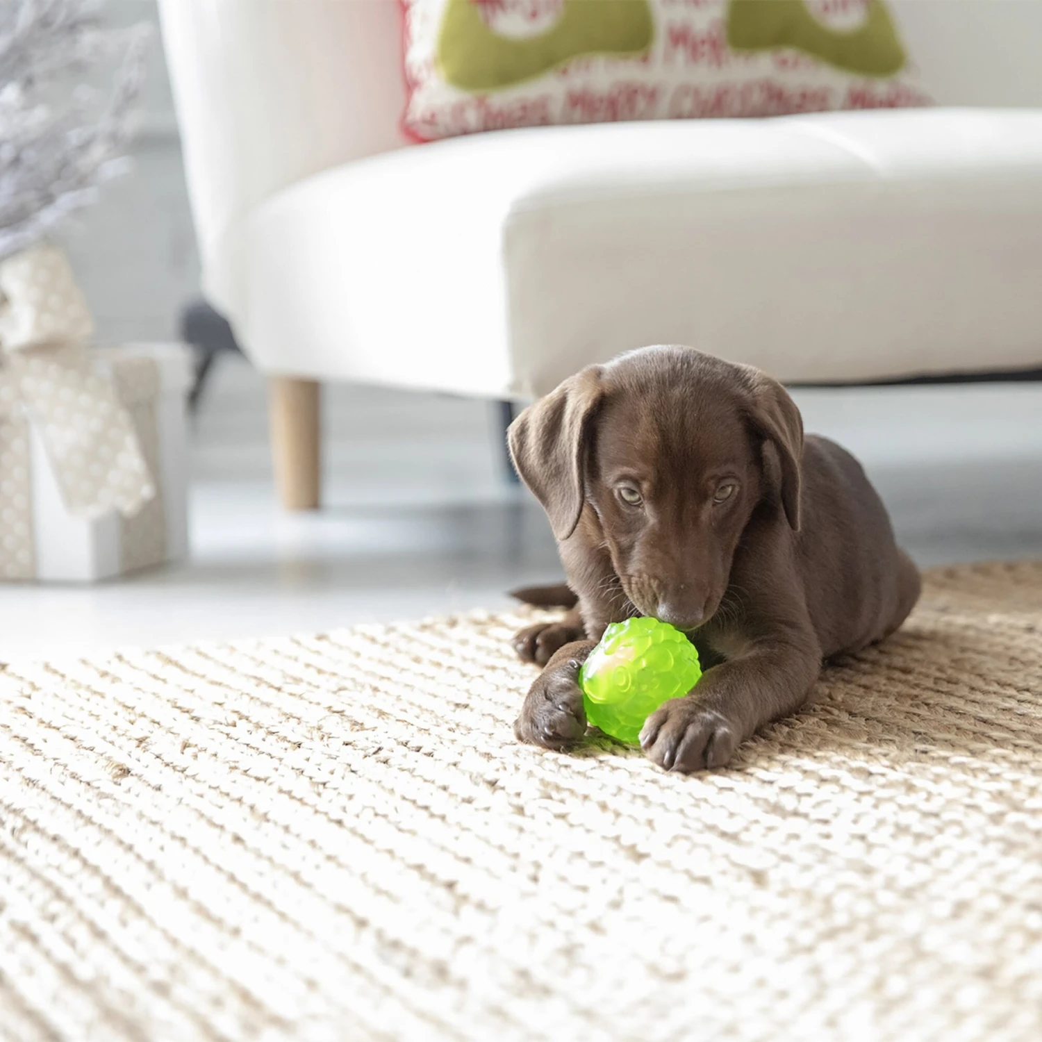 Keep your canine companion on his toes with JW Pet’s Hedgehog Squeaky Ball Dog Toy! Specially designed for puppies and small dogs, it’s made of a translucent, durable rubber that’s non-toxic for your dog’s safety. This exciting toy also features a patented squeaker technology that ensures the squeaker stays inside the toy and doesn’t fall out. Toss it in the air for a fun game of catch or fetch and watch as your BFF tries to guess its next move as it hits the ground, delivering an erratic bounce!