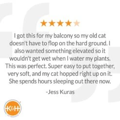 Take sweet dreaming to new heights with the K&H Pet Products Comfy Pet Cot Elevated Pet Bed. The ultimate elevated resting spot for any small dog or cat, this cot features a plush center for superior comfort and support. It’s great for keeping pets off hot or cold floors, giving them the perfect sleeping temperature in any situation–at home, on the go, or even while traveling and camping. It assembles in a snap and the cover is removable and easily washable for ease of use. The water-resistant fabric and the non-skid rubber feet mean this bed has safety and durability in spades.