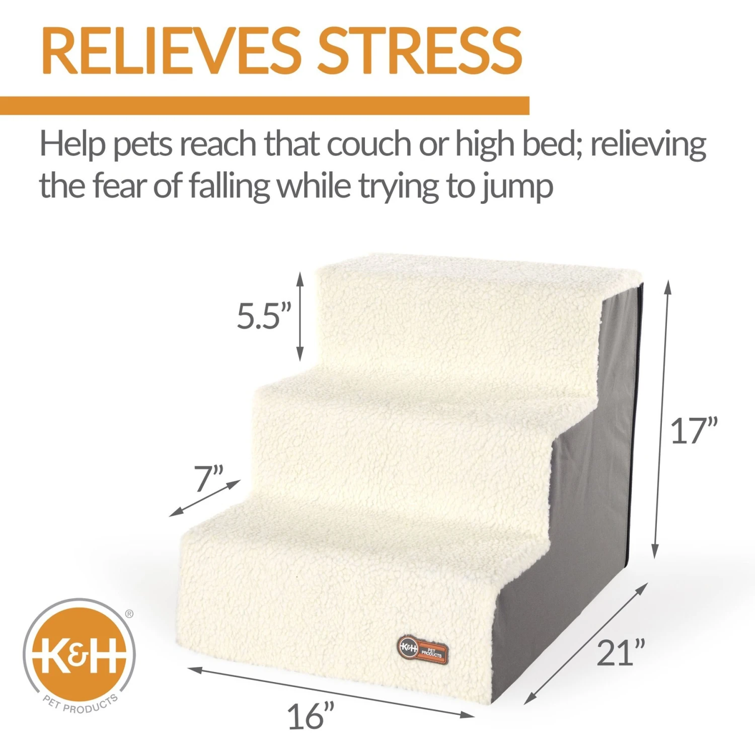 The K&H Pet Products Dog Stair Steps help to give your best friend a paw up onto higher furniture. Paw-fect for getting up onto a couch or high bed, these stairs are lightweight and easy to move from room to room. They feature a durable cover that’s removable and machine washable for easy care. The stairs are also collapsible, so you can break them down flat for easy travel or storage.