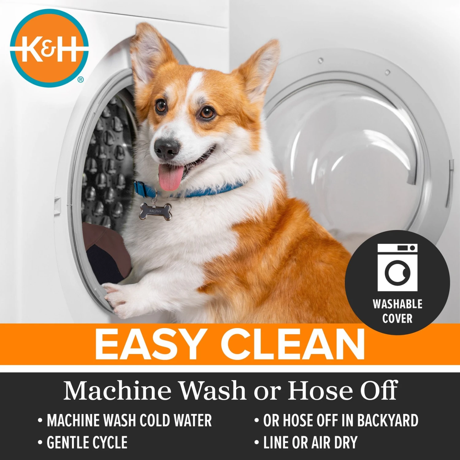 Give your pal a private place to snooze at home or on the go with the K&H Pet Products Original Pet Cot House! This portable pet shelter is paw-fect for use indoors or outside. The raised design helps protect your pet from unwanted pests, while a mesh center, two windows and an open entrance create cooling air circulation. Paw-fect for cats and dogs alike, each shelter is made with heavy-denier, waterproof fabric that stands up to rain and can safely hold up to 200 pounds. Plus, the bed cover and canopy are machine washable for easy cleanups!