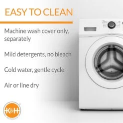- Made with a heavy denier fabric that holds over 200 pounds (300 on the XL size). It is machine washable and can even be hosed off outdoors!
