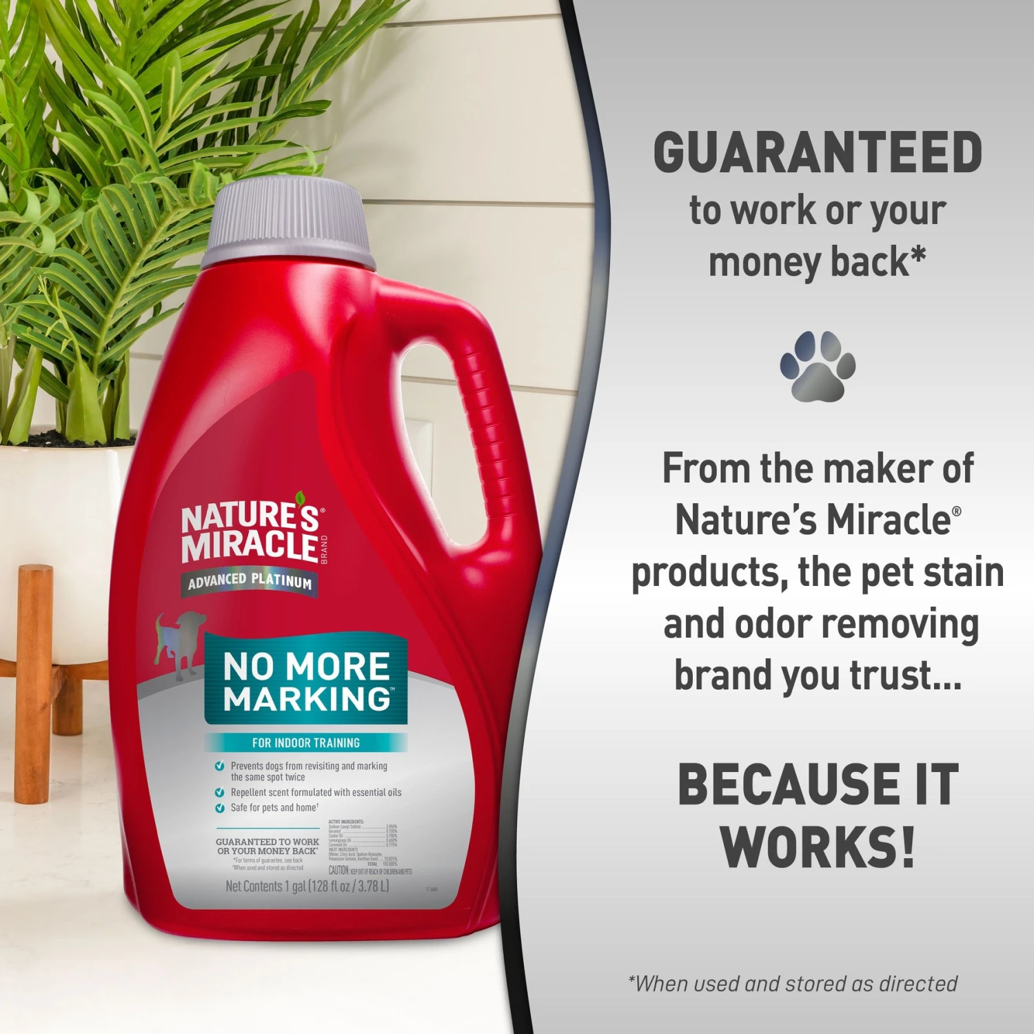Keep your home smelling fur-esh, clean, and free from unwanted stains and smells with the Nature’s Miracle Advanced Platinum No More Marking Pour formula! This effective repellent is made with essential oils to deter dogs from marking behaviors. To use, apply three sprays per square foot to the affected area. Repeat as needed until the habit is broken. This product is intended for use on furniture, floors, or other areas where your pet may be marking their territory, not directly on your barking bestie!