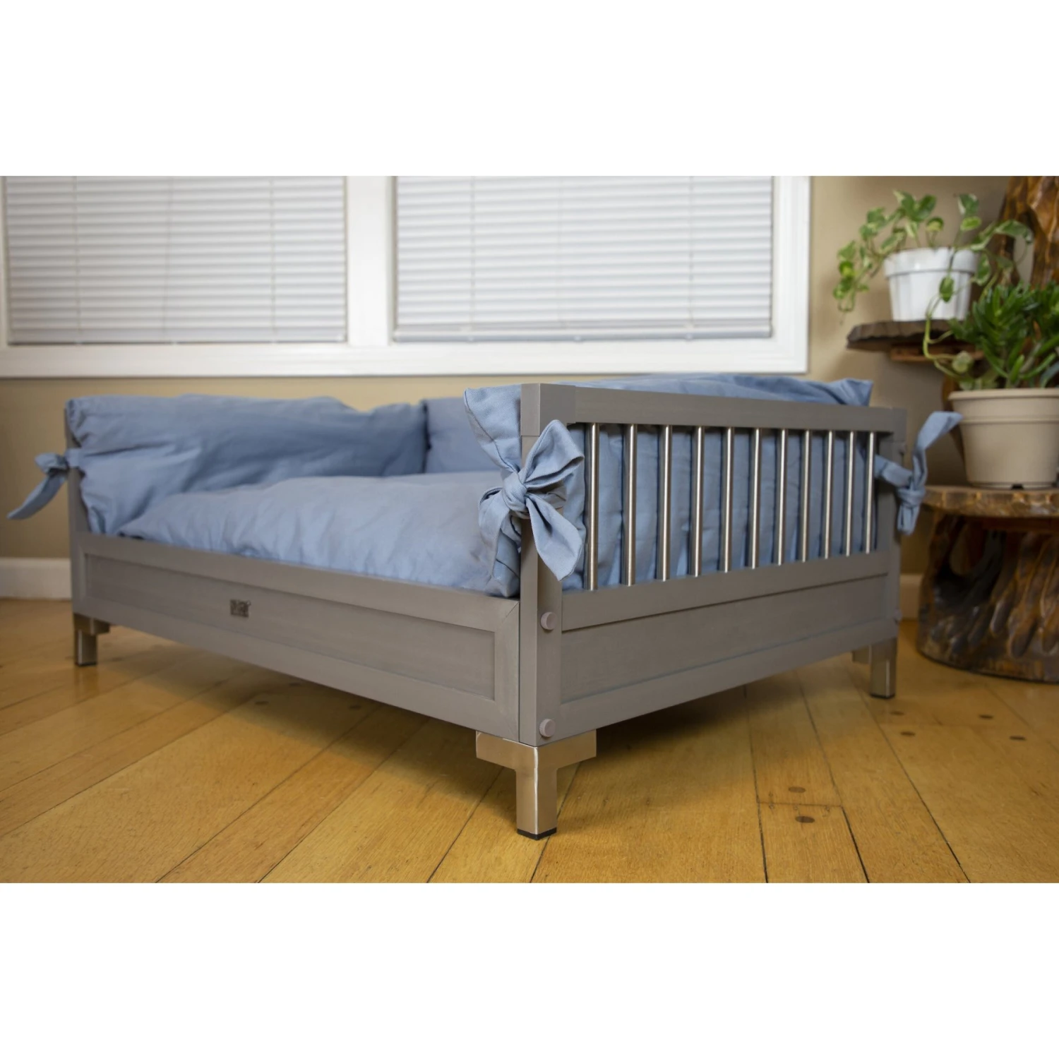The solution to dynamite rest lies in the New Age Pet ecoFLEX Manhattan Raised Dog & Cat Bed with Cushion! Made from a special blend of recycled polymers and reclaimed wood fiber, this material helps resist warping and repel moisture and odor. Featuring stainless steel accents and a super-soft memory foam cushion, your canine companion will snooze in comfort and style! Elevated for optimal ventilation, stylish spindles add a bit of modern pizazz to your home. Simple to assemble, your pup will be off to dreamland in no time.