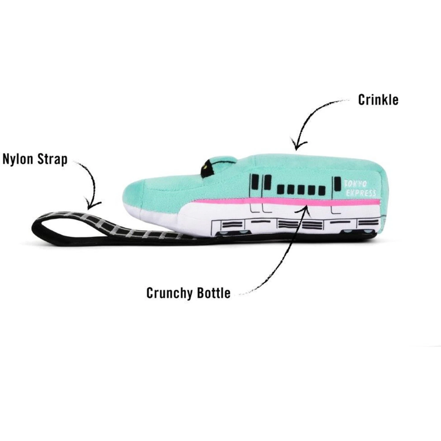 All tracks lead to fun with the P.L.A.Y. Pet Lifestyle And You Canine Commute Collection Barking Bullet Train Plush Squeaky Dog Toy! Created by hand with a double-layer exterior and reinforced stitching for extra durability, this su-paw entertaining squeaky plush is good for the planet and fun for your pooch to play with. The eco-friendly filler is made from 100% post-consumer, certified-safe recycled plastic bottles. Made machine washable and dryer friendly without AZO dye, it’s also crafted using the same quality standards used for children’s products, ensuring exciting, good-time fun.