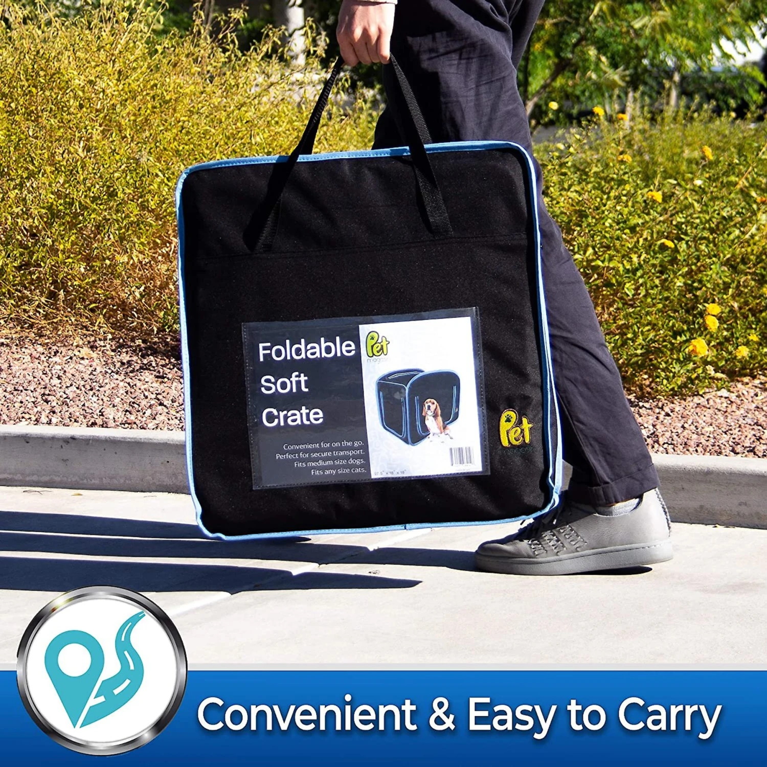Bring your best buddy with you on all of your adventures with a Pet Magasin Foldable Soft Dog Crate. To assemble the crate, simply twist and unfold it, and it’s ready to use! The travel crate features reinforced seatbelt loops at the back for road trips, so it’s a luxurious and convenient way to keep Fluffy safer on the go. Roof and side-door openings make for convenient access to your sidekick. There’s even a handy side compartment to stash necessities. When you arrive at your destination, this portable, soft crate folds easily and fits in the included bag. What’s more, this cool crate is also purr-fect for kitties and other small fur-iends!