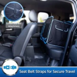 - Features seat belt loops at the back of the crate, as well as a built-in hook to secure your pet’s collar.
