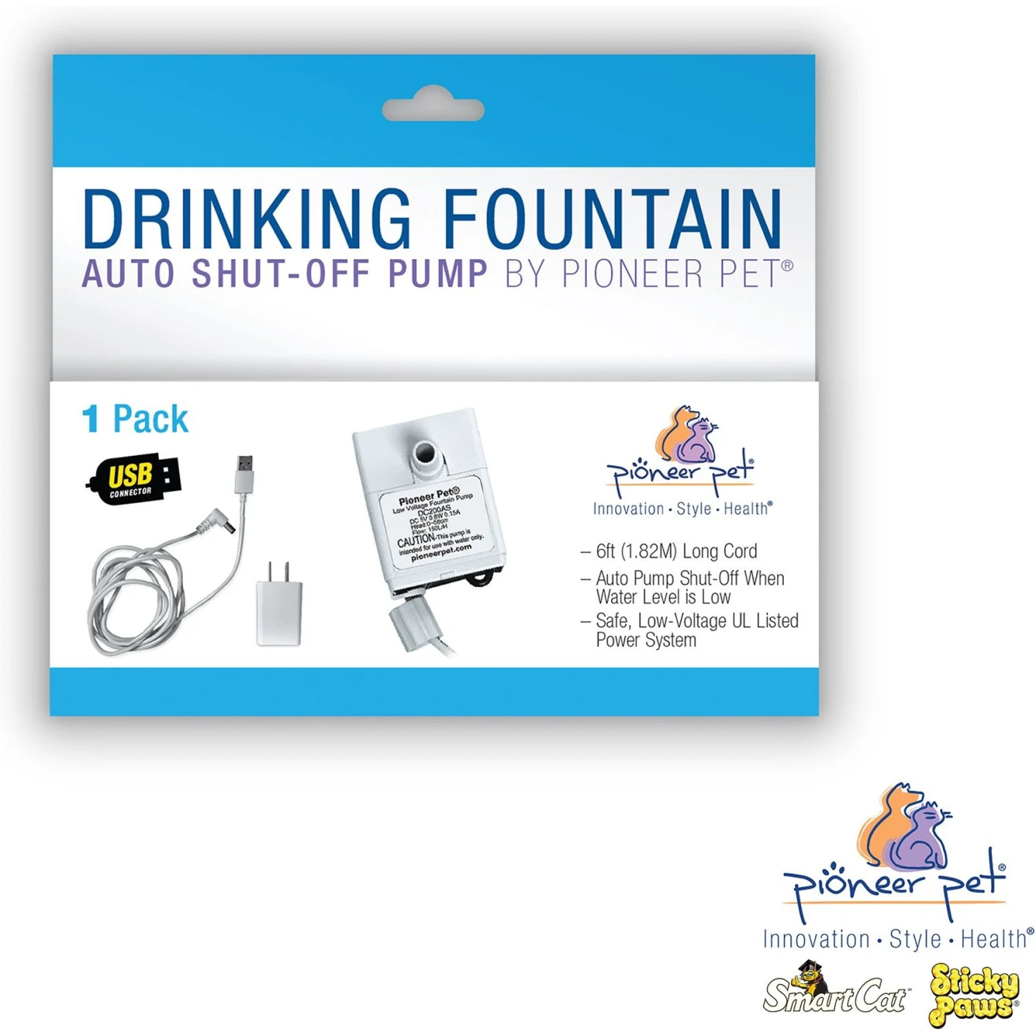 - Replacement pump shuts off automatically when the water level in your pet’s drinking fountain is low.