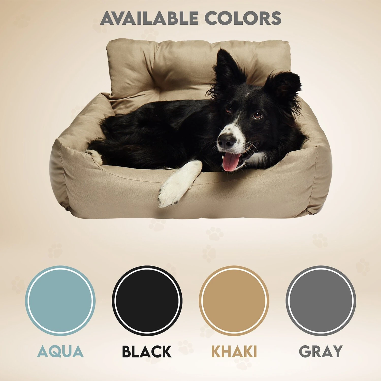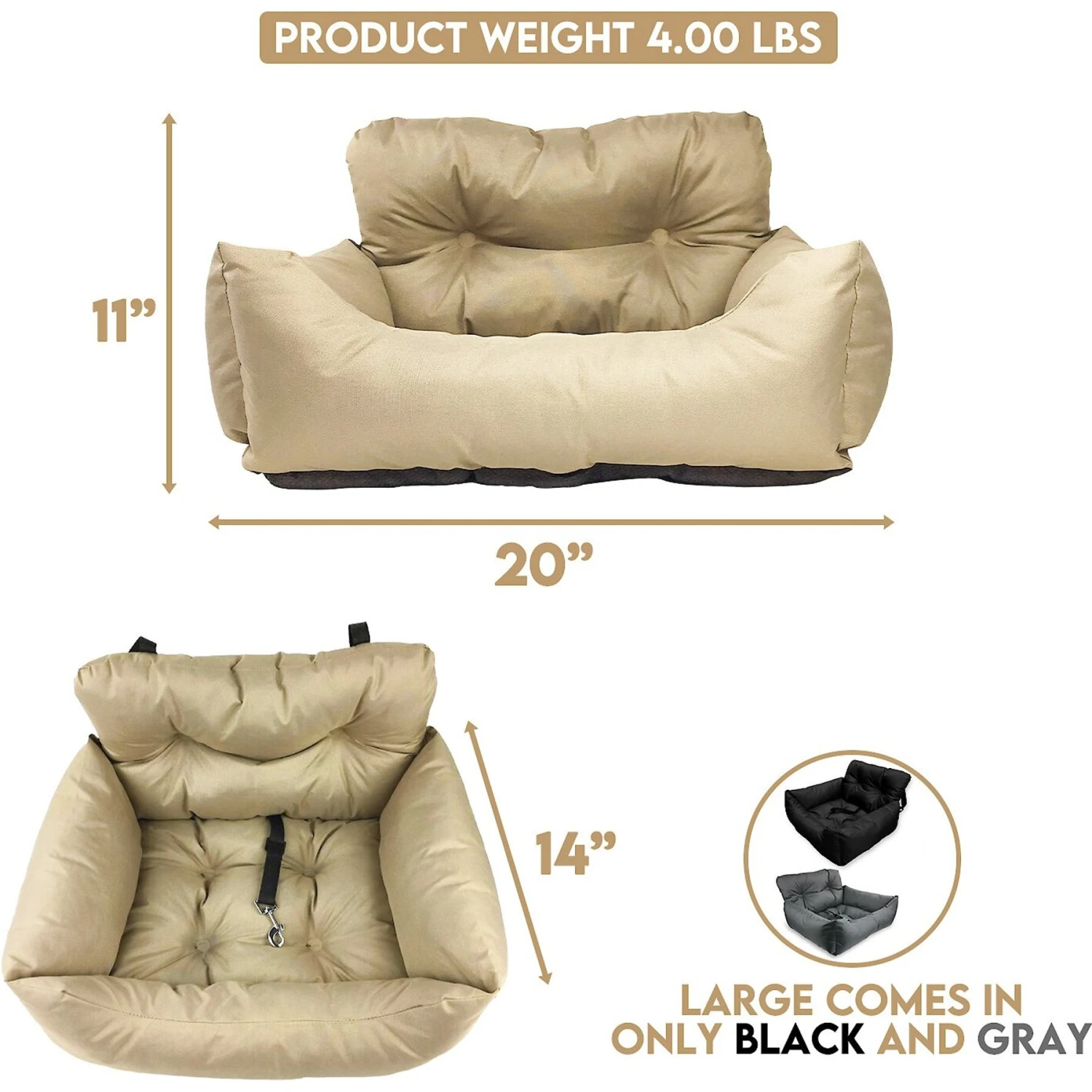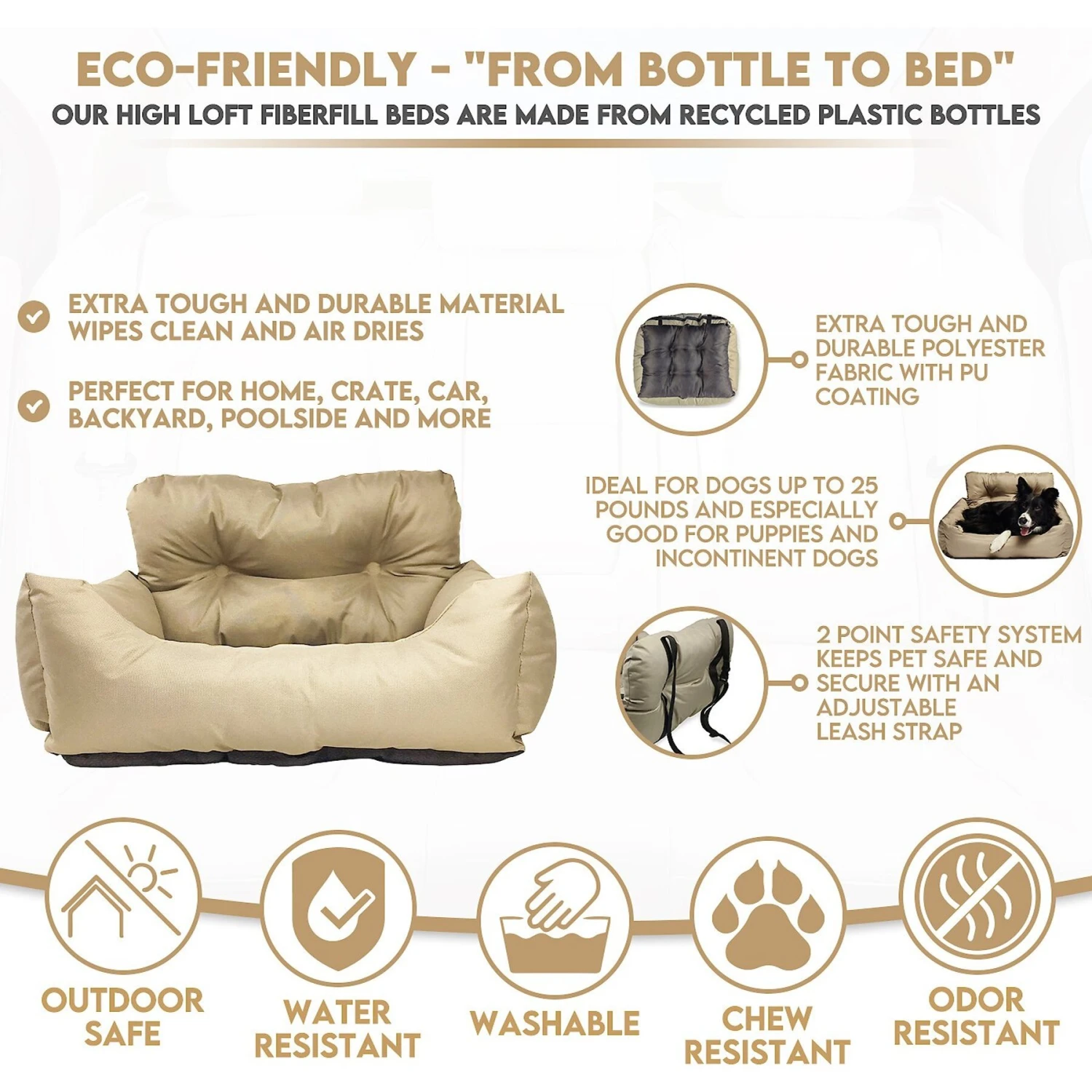 Give your travel companion the paw-fect place to rest after a long day with the Precious Tails Seat Belt Compatible Travel Bolster Cat & Dog Bed! This eco-friendly bed is made from recycled plastic bottles and durable polyester fabric materials that easily wipe clean and air-dry. It features a two-point safety system and an adjustable leash strap. It’s also water-resistant, odor-resistant, and chew-resistant. Designed with comfort in mind, this bed will keep your best bud cool, calm and collected while also staying safe and secure during road trips, vet visits or as a cozy hideaway inside your home or backyard!
