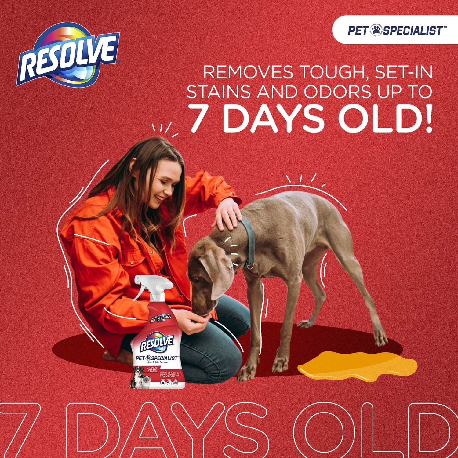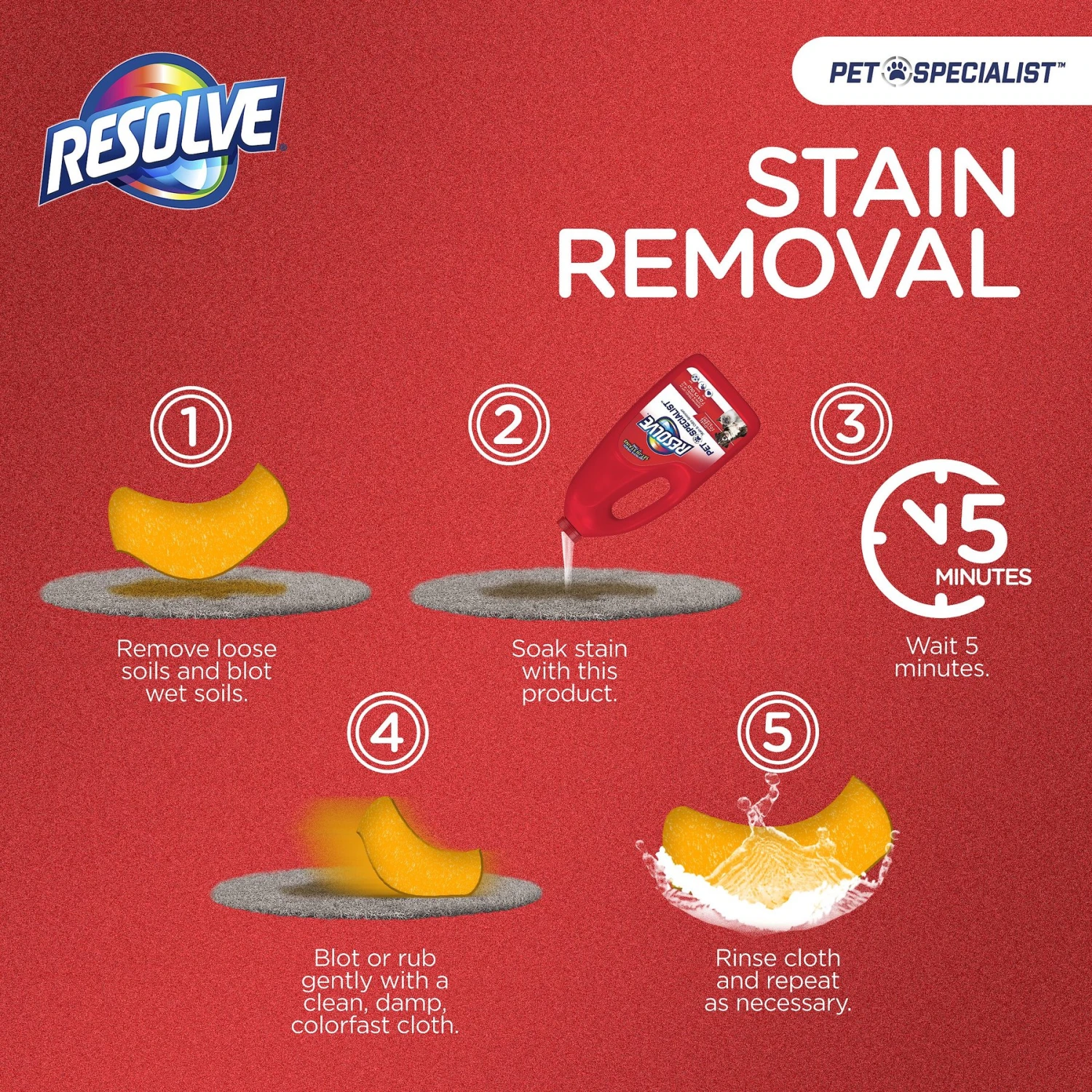 Stains and odors don’t have to be an unavoidable part of pet parent life, especially when you deploy Resolve Pet Specialist Stain & Odor Remover! Made in the USA, this tough stain remover effectively eliminates odors and stains resulting from human and pet messes like dirt, feces, and vomit. Plus, it is safe for use around pets and pet parents when used as directed, so you can rest easy knowing you are using a product that is safe for all members of your family. The convenient pouring action is paw-fect for keeping your home looking and smelling fresh and clean!