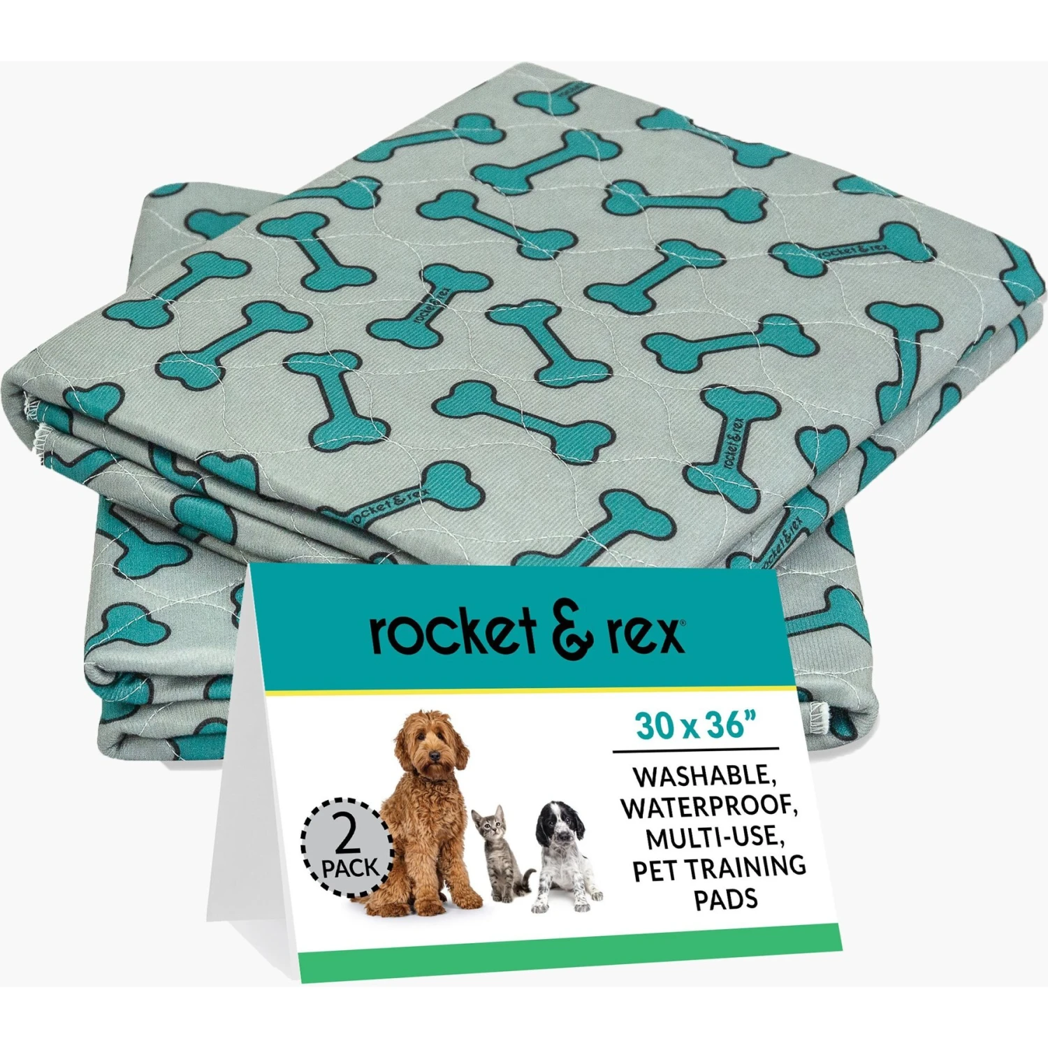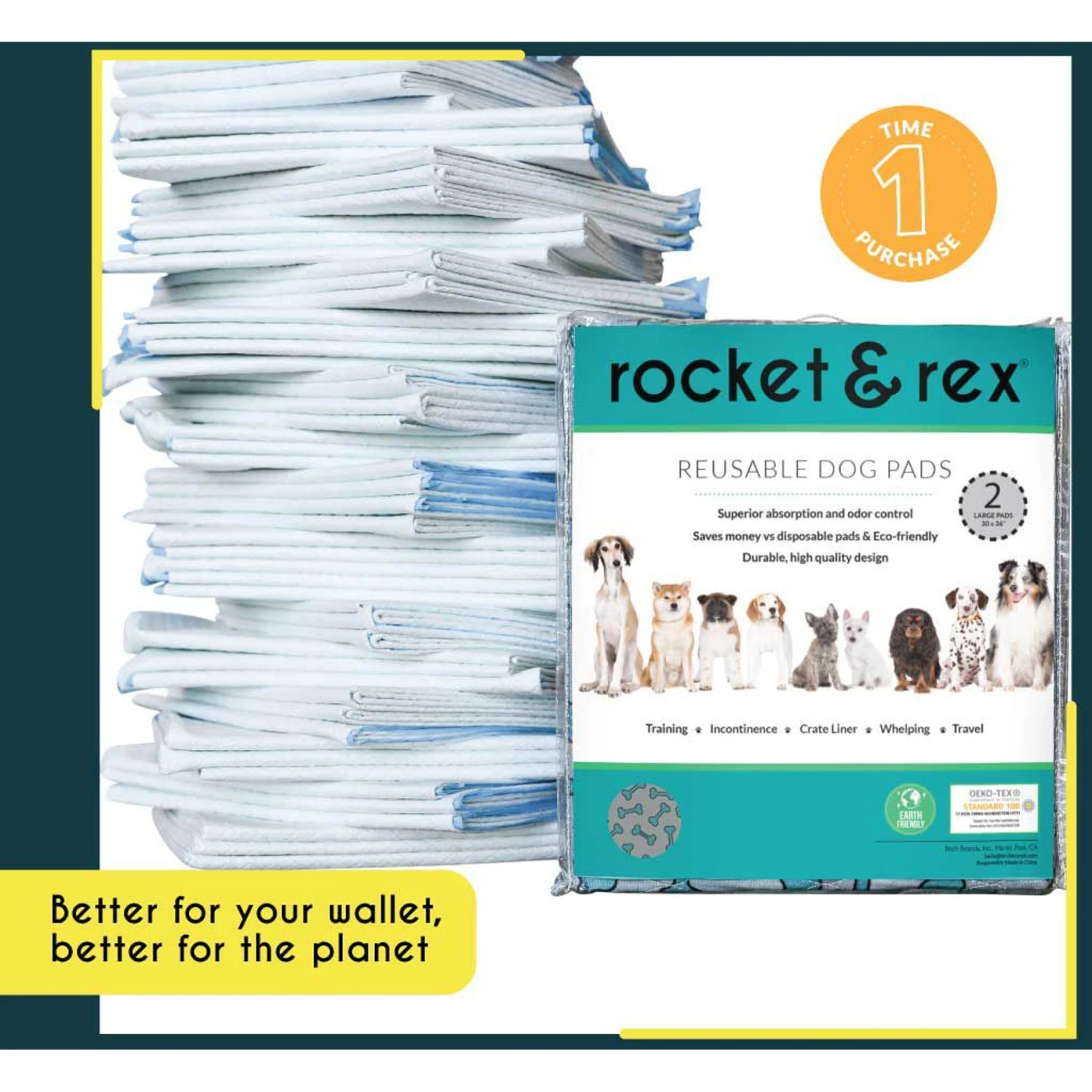 Make house-training your pup eco-friendlier with Rocket & Rex Premium Reusable Puppy Training Pads. They are better for the environment than disposable pads and machine washable for convenience. With four layers and a waterproof backing, these pads are absorbent and durable enough to stand up to multiple uses while absorbing and retaining odors to keep your home smelling clean. They also prevent tracking to protect your floors and rugs to keep them dry and free from mess. Rocket & Rex Premium Reusable Puppy Training Pads are ideal for housebreaking puppies, senior leaks, whelping, lining crates, placing under food bowls and litter boxes, and travel with your companion.