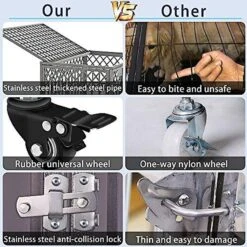 - Made of well-welded steel bars with a non-toxic finished surface to protect your pet’s health in case he chews or licks the frame.