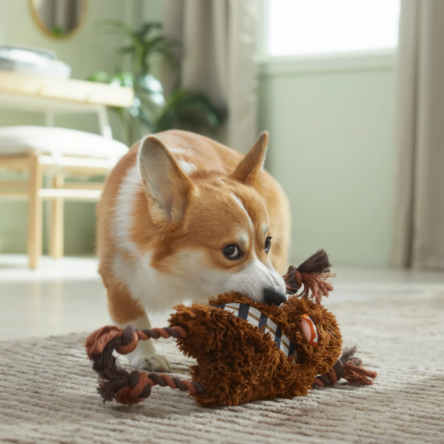 Playtime just leveled up in a major way and your pooch didn’t even have to travel across the solar system for it! This Star Wars™ Chewbacca™ plush rope toy has arrived just in time for the space-aged shenanigans! Fetch, hide-and-seek and a whole variety of games are on the schedule for today. Perfect for interactive play with doggy parents or for supervised solo sessions wherever, Chewie is down for it all. The two sewn-in squeakers make this the ultimate playdate friend, and the soft plush material means it doubles as a naptime buddy, as well.