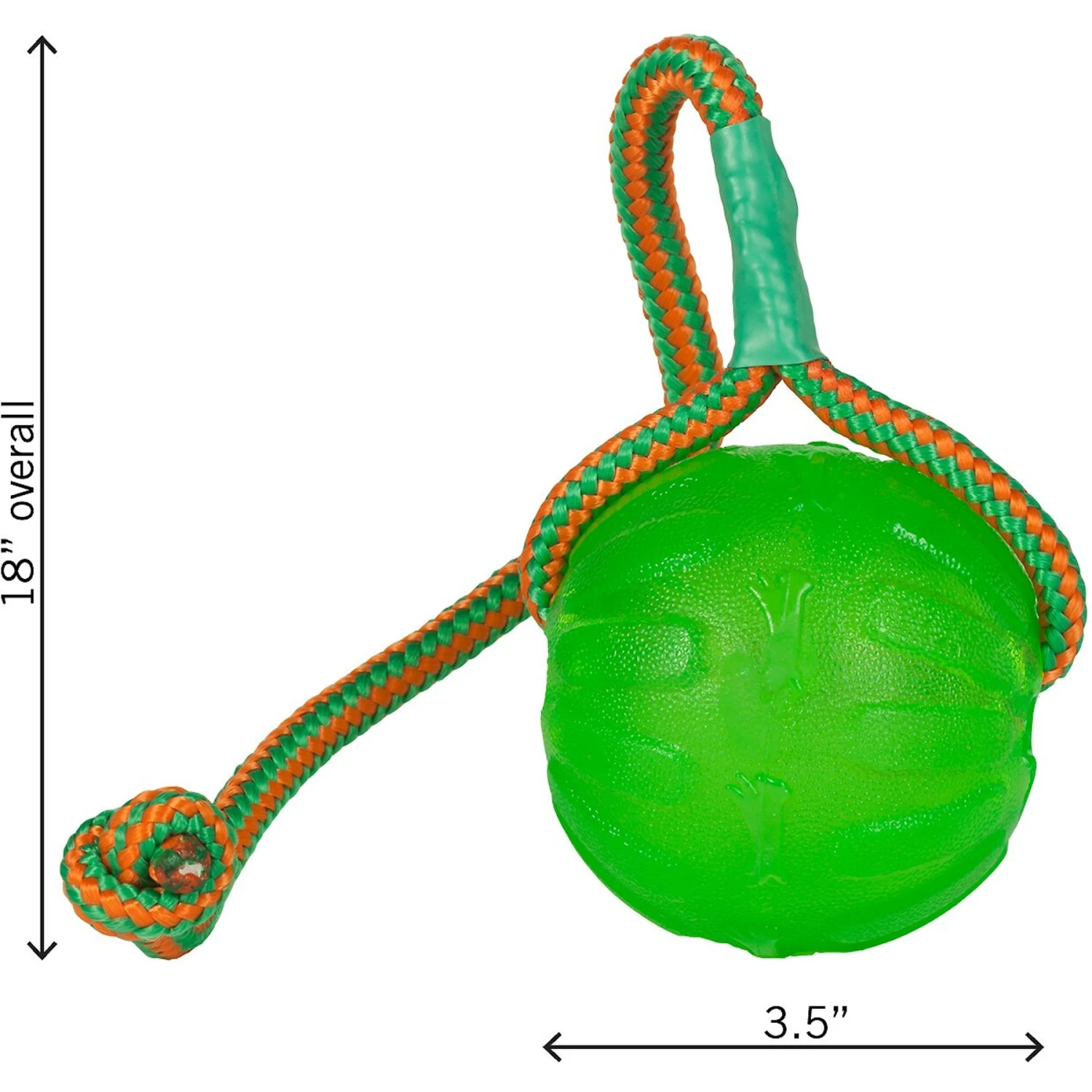 Your pooch and you will have a ball with the Starmark Swing ‘n Fling Chew Ball Dog Toy! Designed to do it all, it’s paw-fect for games of tug, shake, chew and toss—and even floats in water! Virtually indestructible, this paw-some toy is stronger than a rubber ball and paw-fect for your powerful chewer. Crafted to fly far for fetching fun, you’ll love throwing this su-paw ball and your furry friend will love retrieving it even more. Safer to chew than a tennis ball, it’s healthy for your best pal’s dental hygiene and free of latex, vinyl and phthalates.