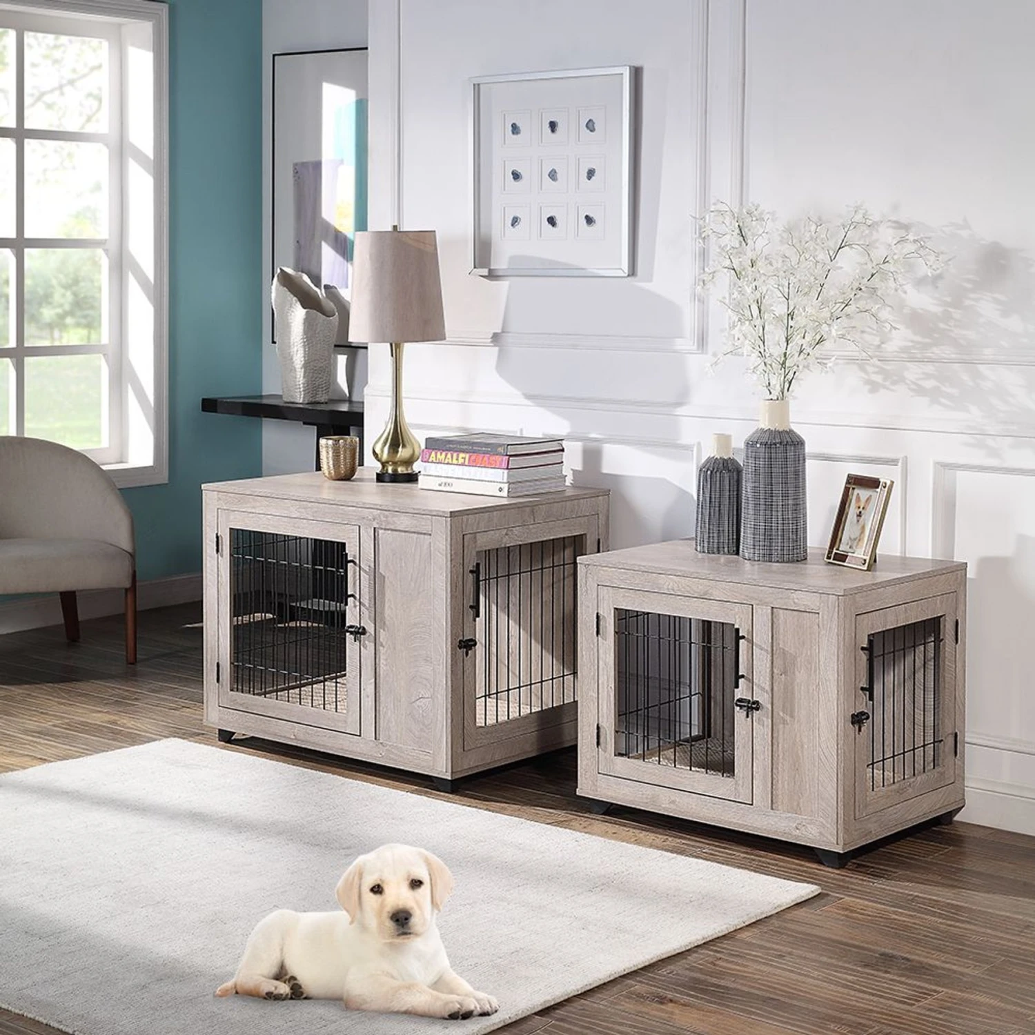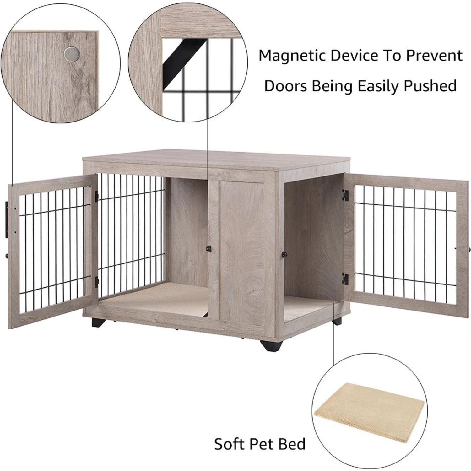 Your paw-some pup will be the bark of the town with the Unipaws Wooden Wire Furniture Style Dog Crate, which features an elegant wooden frame, double doors on the front and an additional side door for easy entry and exit, and a cozy removable cushion! It also features a wide, flat top for use as a nightstand or end table. Your barking bestie is sure to love this cozy crate, and pet paw-rents will love the easy clean-up and chic, yet functional design!