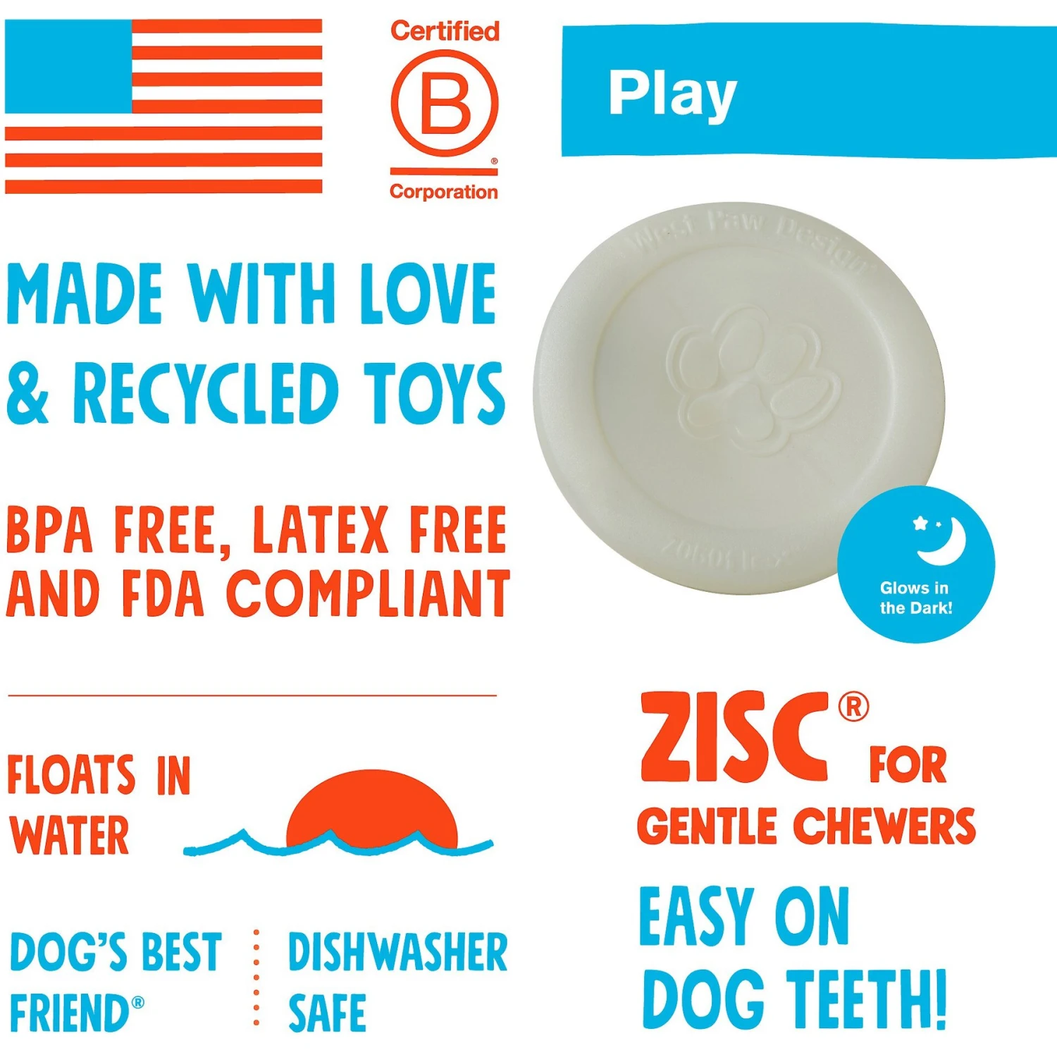 A floatable flyer that goes the distance, Zisc is a must-have toy for active dogs. More pliable than a hard-shell Frisbee and faster than those made from fabric, Zisc is a perfect pick for trips to the park, yard or water. Flexible material makes this dog Frisbee gentle on soft mouths and easy to pick up. In the world of Frisbee-style dog toys, Zisc flies to the top. While the Zisc dog toy is not designed to be a chew toy, it is designed to withstand as much active play as dogs can dish out while playing Frisbee.