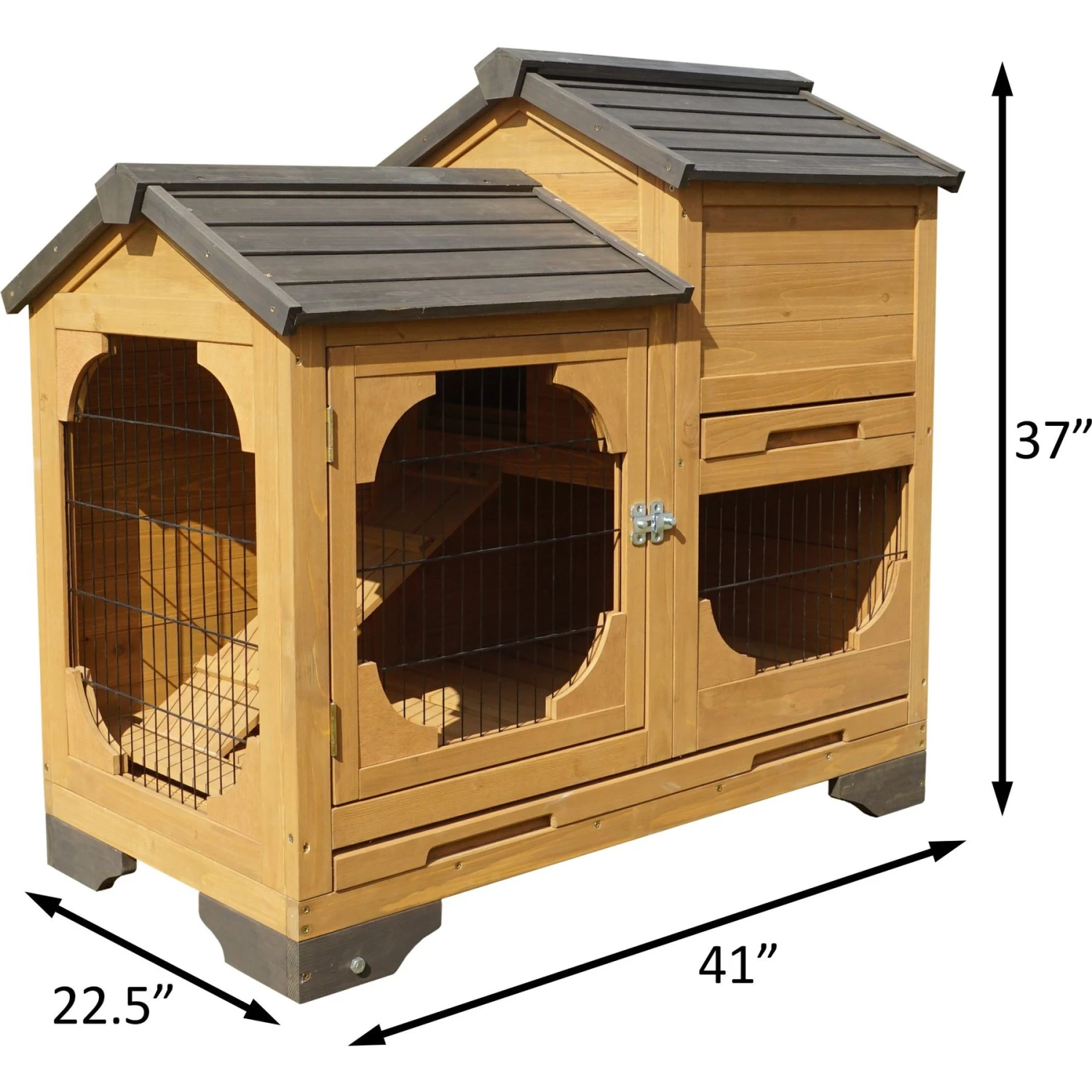 Give your bouncing buddy a paw-fect place to lounge and play with the ZooVilla Indoor & Outdoor Bunny Lounge! This elegant, Victorian themed enclosure provides plenty of space to shelter on two different levels. It’s made from durable Canadian Hemlock and black metal. It also features a slatted floor to help promote hutch cleanliness and a fold-down exterior that doubles as a ramp. It includes two concealed wheels for easy portability and two removable trays for easy cleaning, which is a perk for pet paw-rents. This handy hutch is sure to be a paw-fect place for your best fur-iend to hang both indoors and outside!