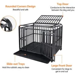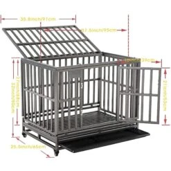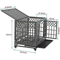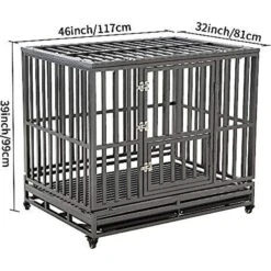 SMONTER Heavy Duty Metal Anxiety Indoor & Outdoor Large Breed Dog Crate, Dark Silver